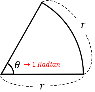 반지름 r인 원에서, 호의 길이가 r일 때의 중심각을 1라디안이라고 한다.