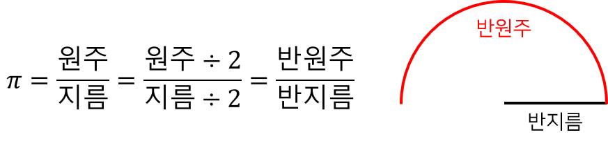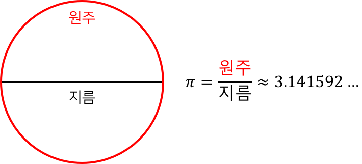 원주율(π)은 원의 둘레와 지름의 비율이다.