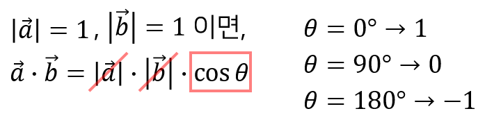 벡터의 내적은 두 벡터를 곱하는 연산이지만, 그 결과는 스칼라이다.